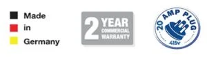 2 Year Commercial Warranty. 10 Year Brass Pump Head warranty. Made in Germany.